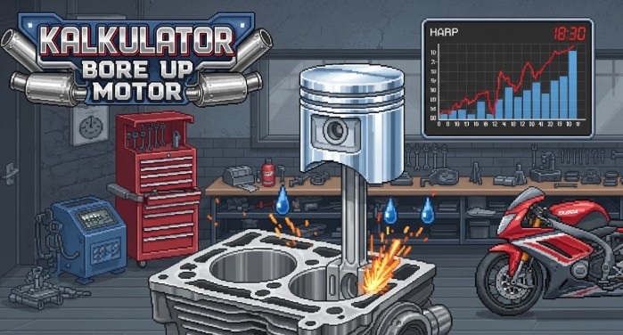 Kalkulator Bore Up Mesin – Racing Spec BORE UP CALC Hitung presisi CC mesin modifikasimu Diameter Piston (Bore) mm Panjang Langkah (Stroke) mm Jumlah Silinder cyl GAS HITUNG! Kapasitas Mesin Baru 0.0 CC Engine Tools by MisterAnggi.com Powered by AskNaran.com